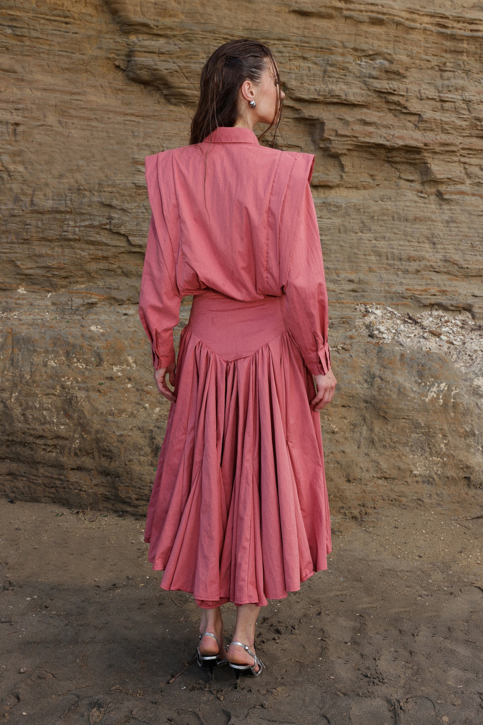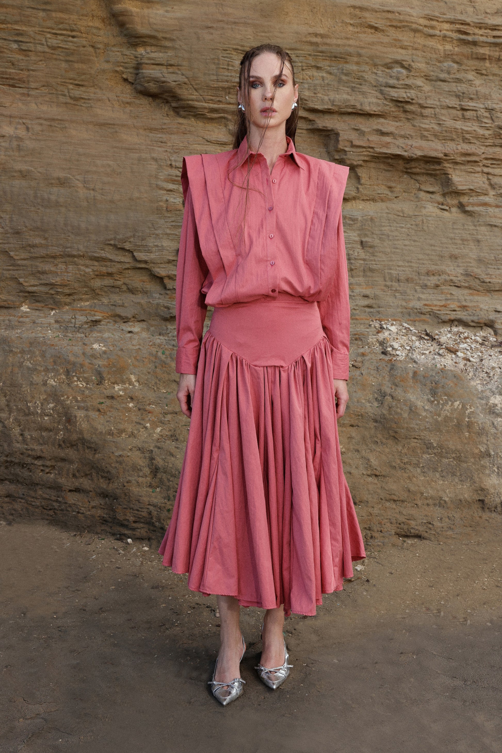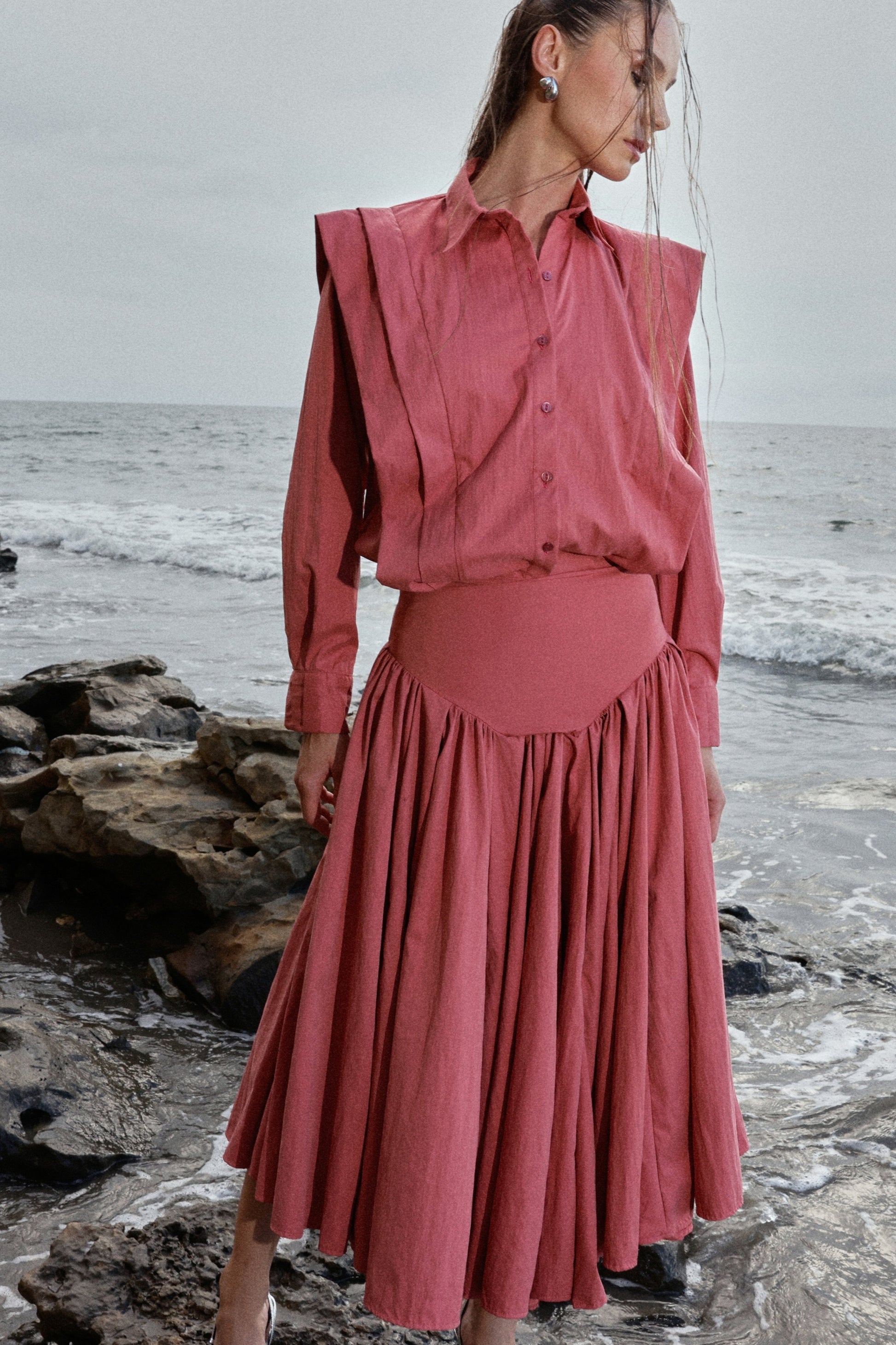 Camisa manga larga con silueta triángulo invertido con alforzas delanteras, espalda y puños.